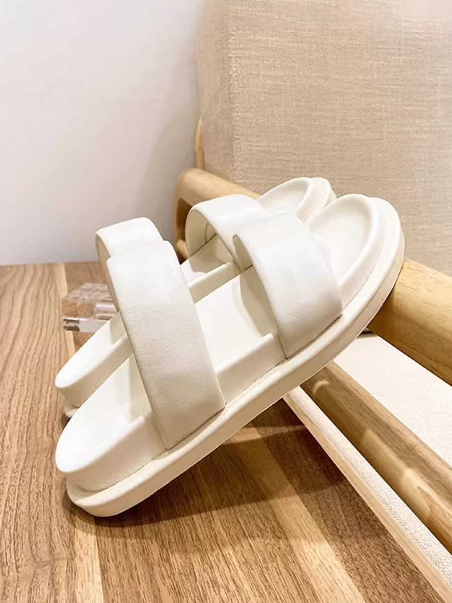 Genuine Leather Candy-colored Flat Slippers - Women's