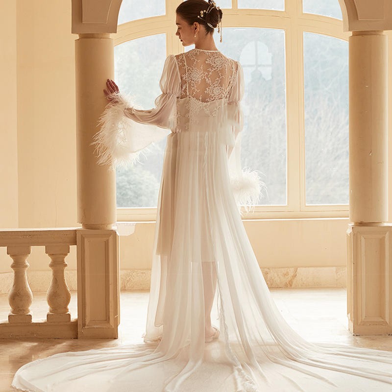 Women's Ostrich Feather Light Gauze Pajama Suspender Set