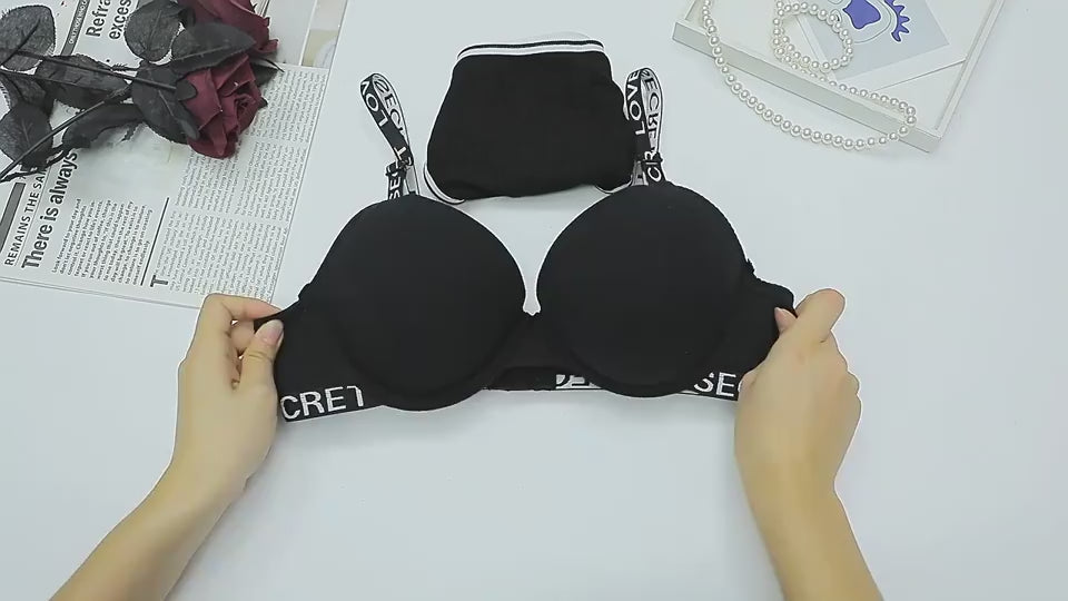 Sexy Backless Push-Up Lingerie Set – Supportive Bra with Lettered Shoulder Straps
